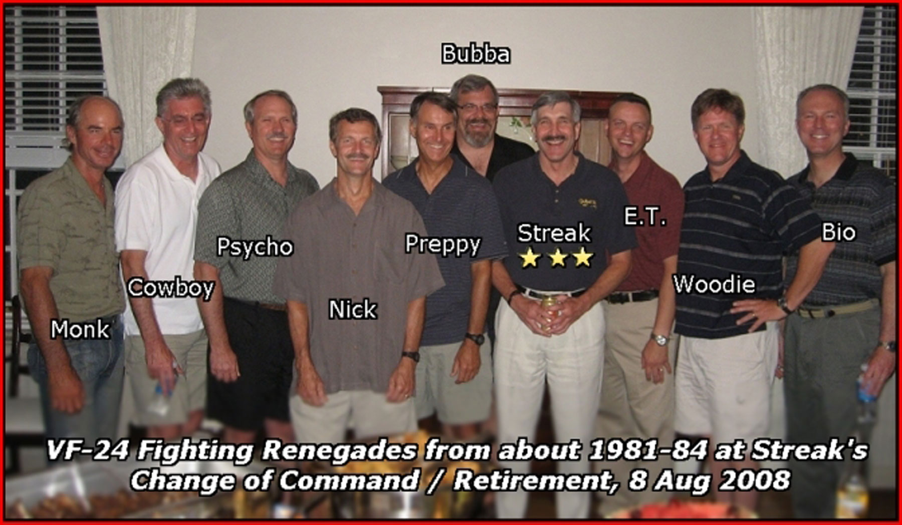 VF-24 VF-24 1st Deployment 19771st F-14 Squadron Clifton 1977VF-24 1st F-14 in Japan 1977Night Maintenance Onboard Constellation 1981 Future VADM James A. Winnefeld, Jr. (l) and Dave "Bio" Baranek (r)VADM Marty "Streak" Chanik Retires