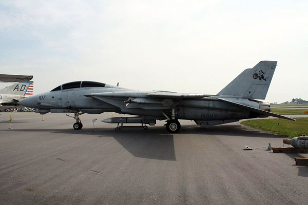 F-14D BuNo 163902 was delivered to the Navy on 9 April 1991. It was the 17th F-14D manufactured by Grumman. It served with VF-124 and VF-101 but spent most of its life with the Tomcatters of VF-31. During it's time with VF-31 it made several WestPac and Persian Gulf tours as part of CVW-14 on board the carrier Abraham Lincoln (CVN-72). When VF-31 transferred to CVW-8, Felix 107 as it was then know, made the final Tomcat cruise on board the Theodore Roosevelt and was one of the last F-14s to see action over Iraq. At the Tomcat Sunset event on 22 September 2006 before a huge crowd at NAS Oceana, Felix 107 made the ceremonial final flight of the Tomcat.