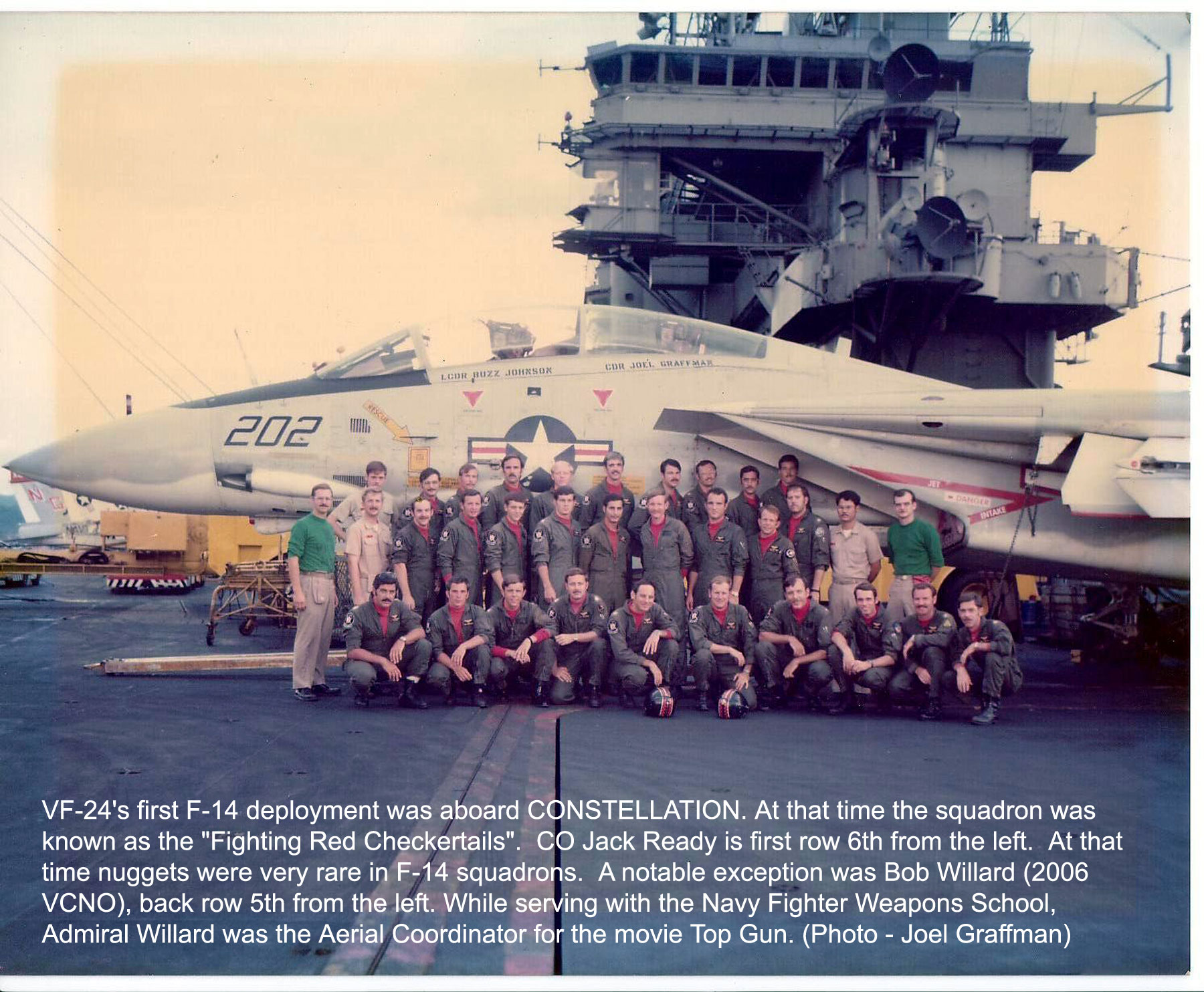 VF-24 VF-24 1st Deployment 19771st F-14 Squadron Clifton 1977VF-24 1st F-14 in Japan 1977Night Maintenance Onboard Constellation 1981 Future VADM James A. Winnefeld, Jr. (l) and Dave "Bio" Baranek (r)VADM Marty "Streak" Chanik Retires